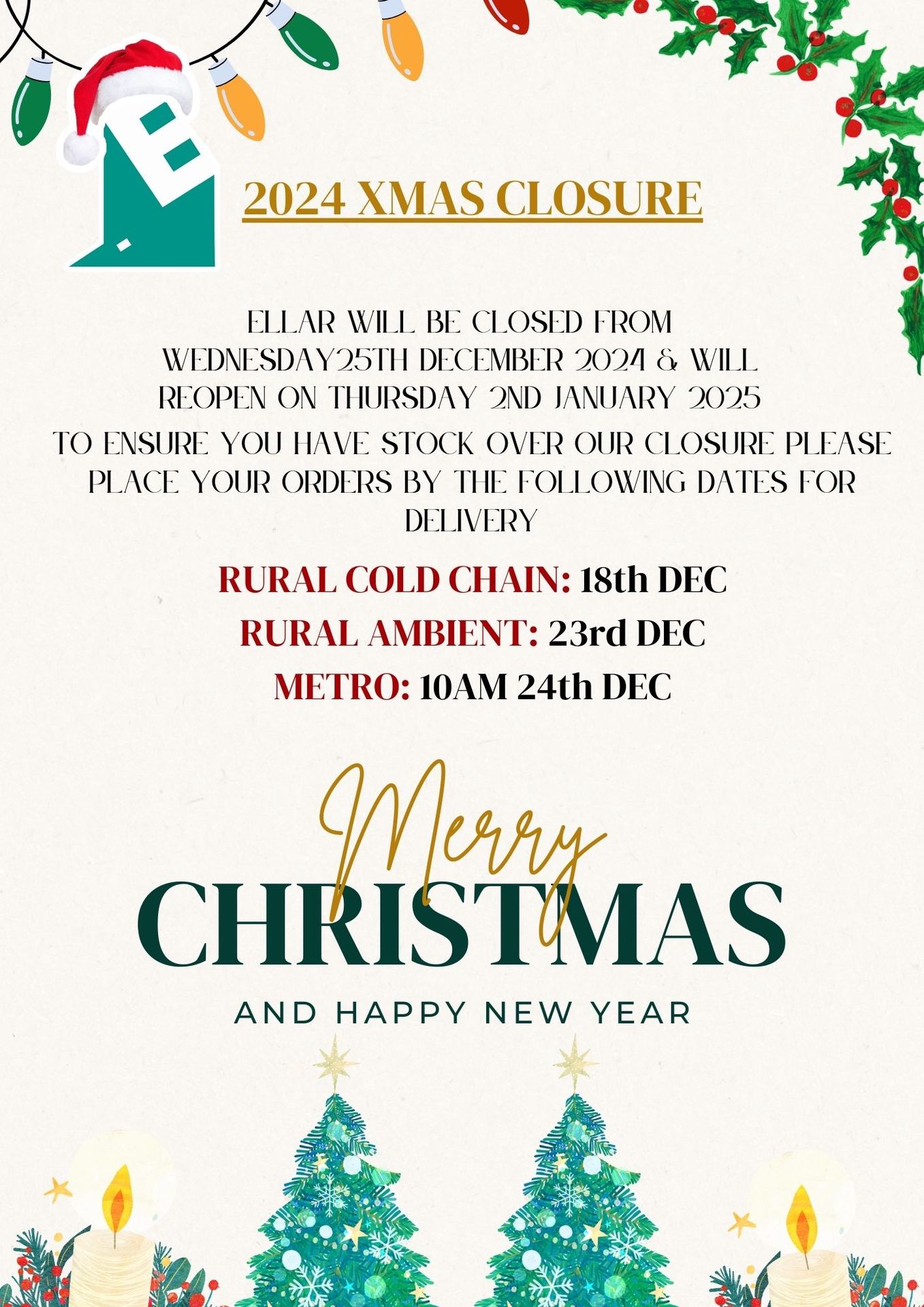 Ellar Christmas Closure